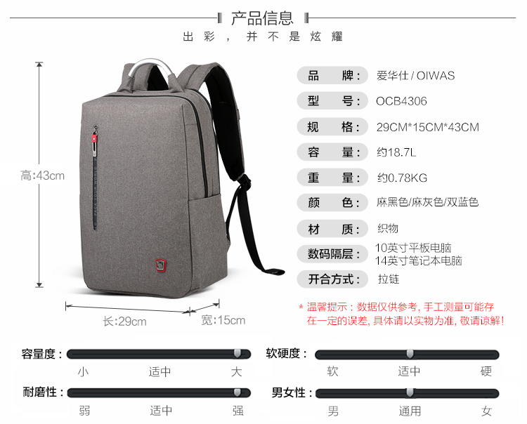 愛華仕(OIWAS)商務(wù)電腦包14英寸