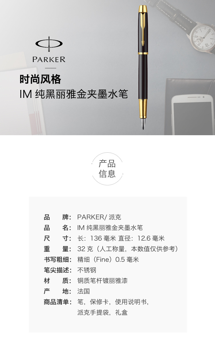 派克IM純黑麗雅金夾墨水筆