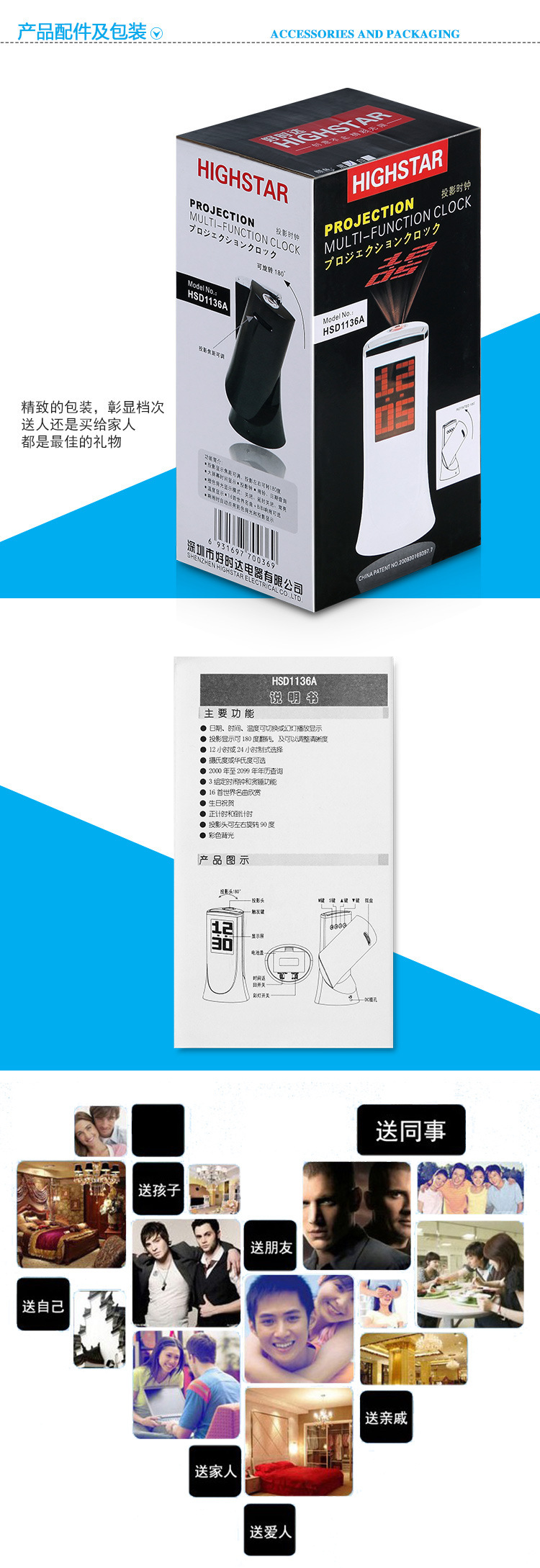 好時(shí)達(dá)投影鐘