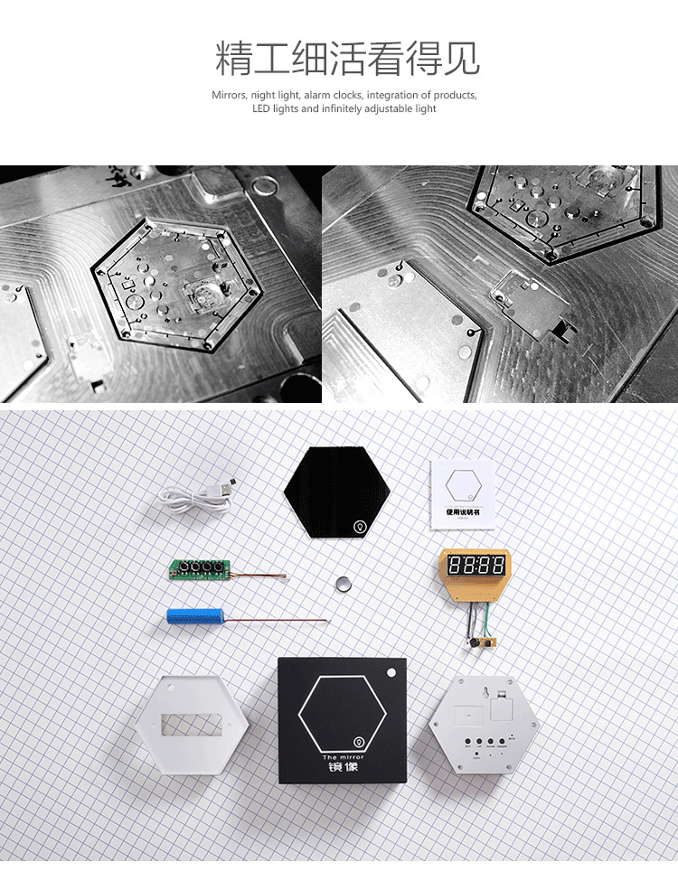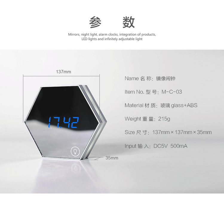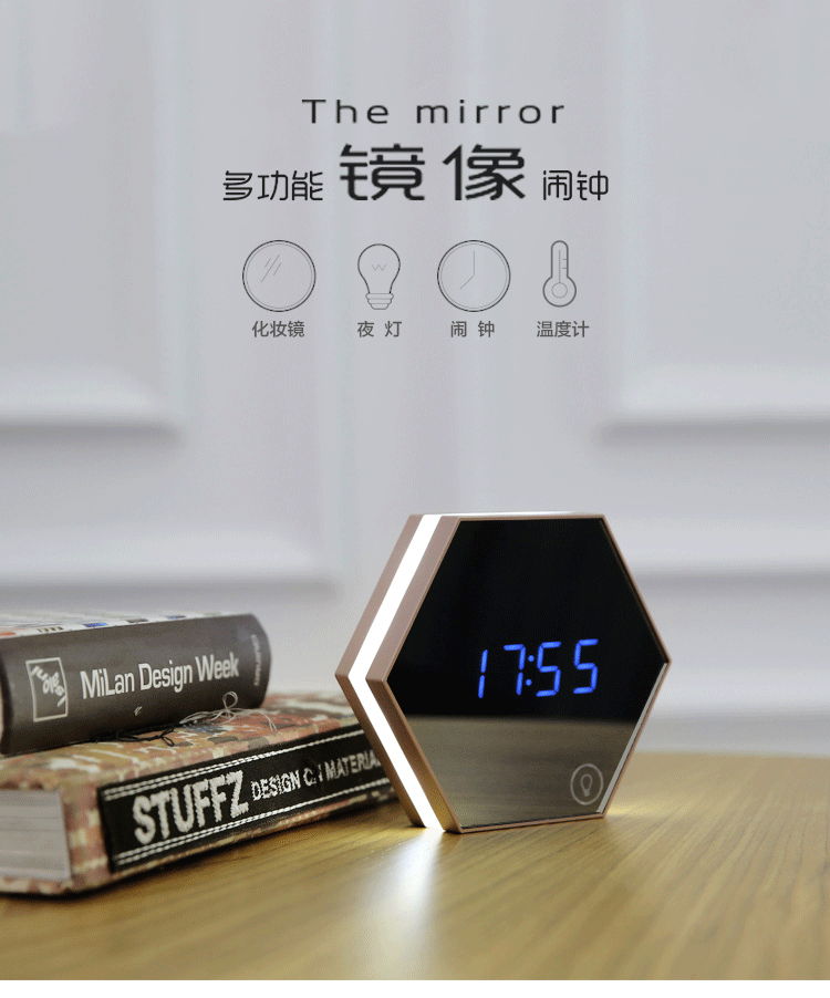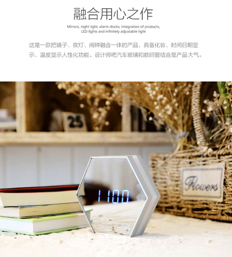 LED鏡面夜燈電子鐘