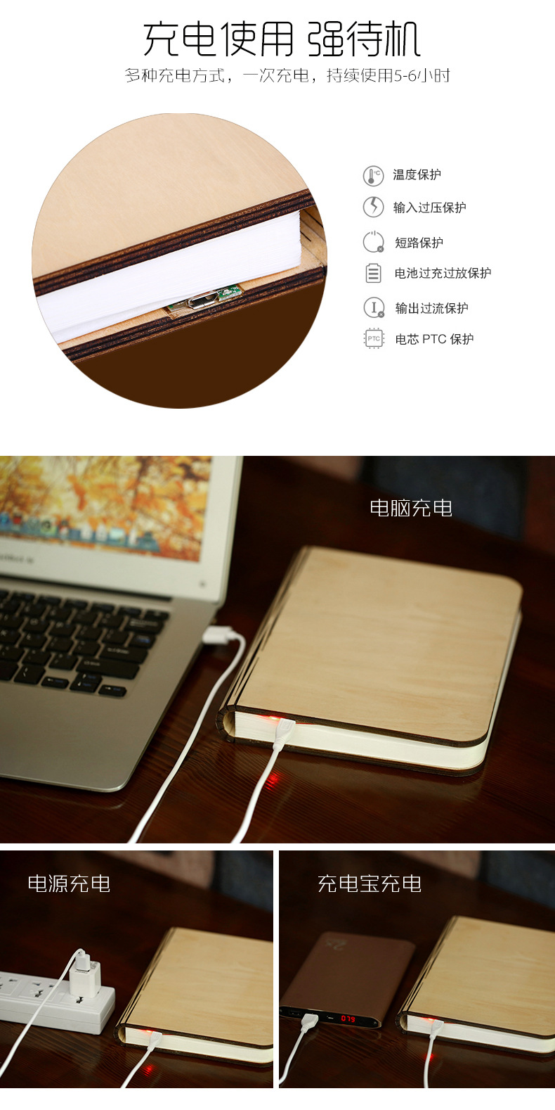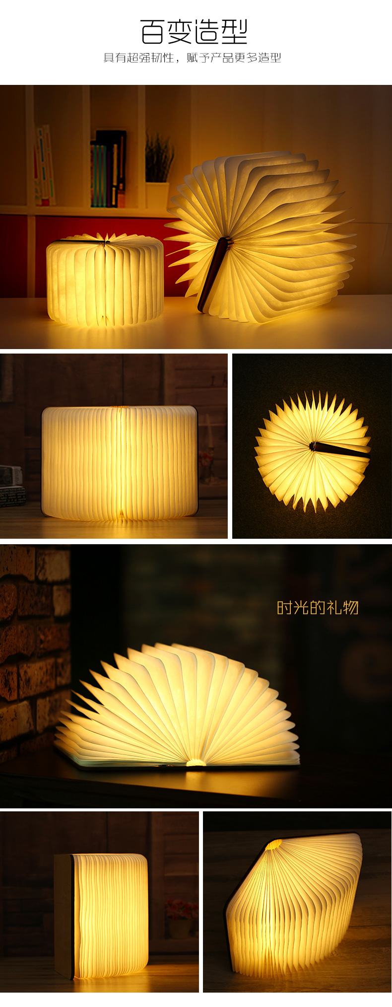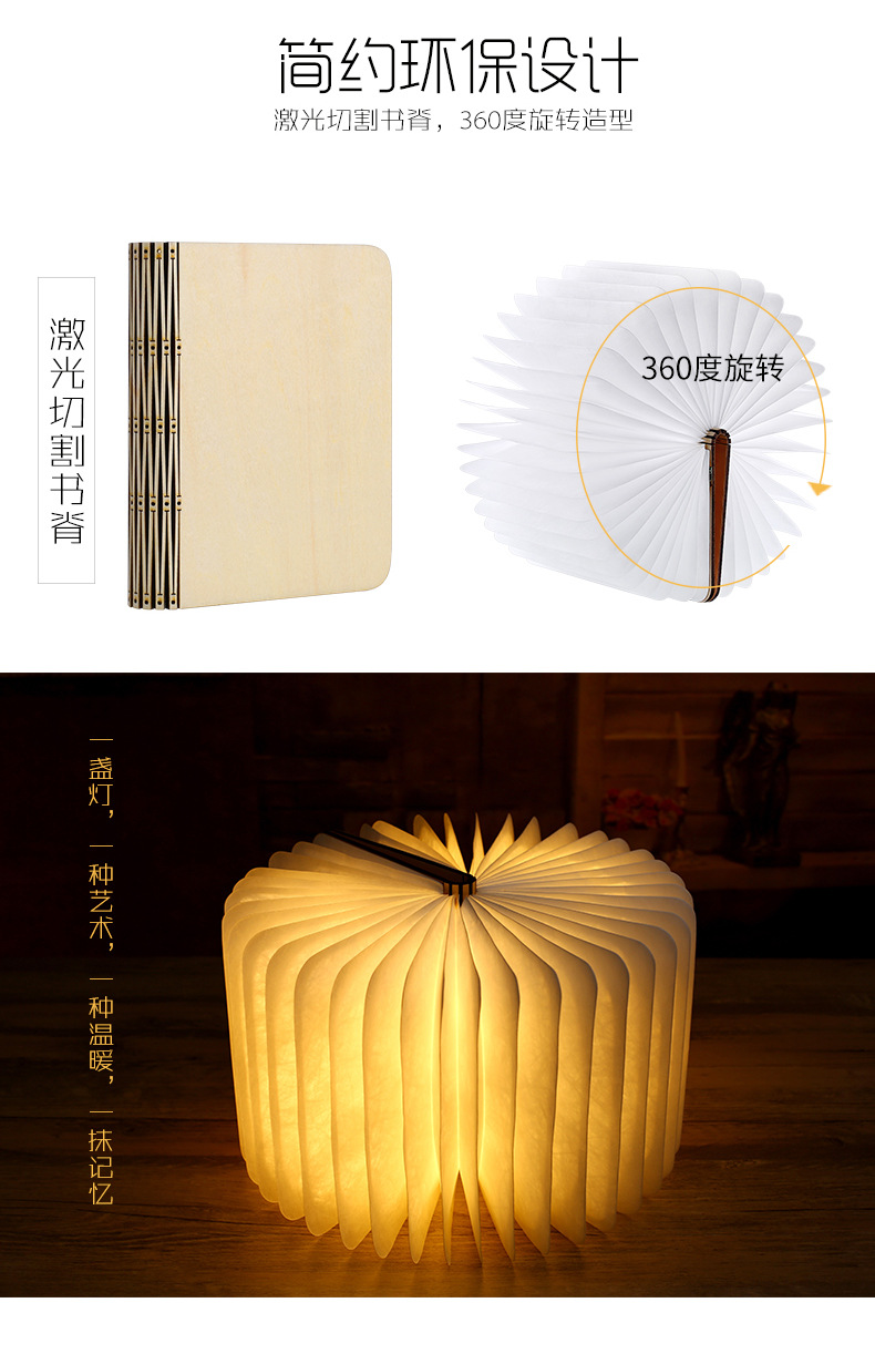 創(chuàng)意木制USB充電翻頁書本燈