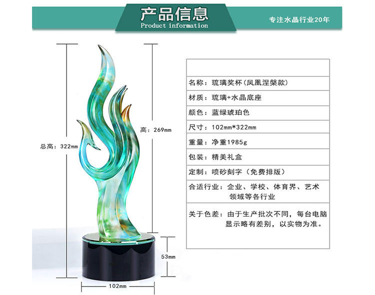 創意琉璃鳳凰涅槃獎杯