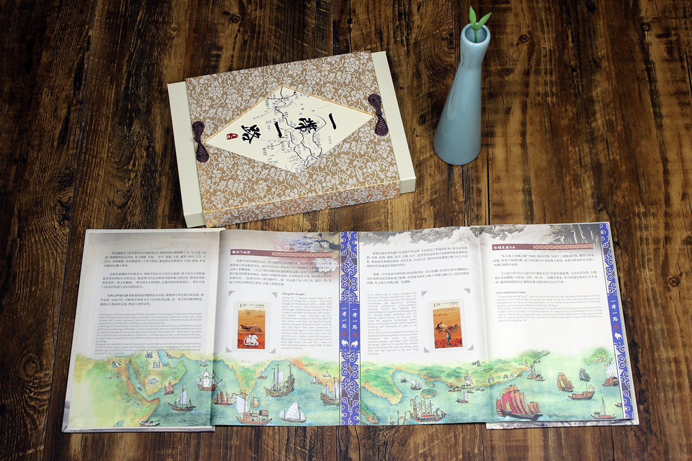 “一帶一路”是“絲綢之路經(jīng)濟帶”和“21世紀海上絲綢之路”的簡稱,是從古絲綢之路基礎上,提煉出的中國智慧。張騫策馬西行,玄奘西天取經(jīng),鳩摩羅什傳經(jīng),班超投筆從戎定西域,徐福東渡日本,鄭和揚帆西下……絲綢郵票珍藏冊《使命和夢想 “一帶一路”》遴選了中國古代“絲綢之路”上六位先人的感人故事,他們在這條偉大之路上為人類文明進步作出了不可磨滅的貢獻。