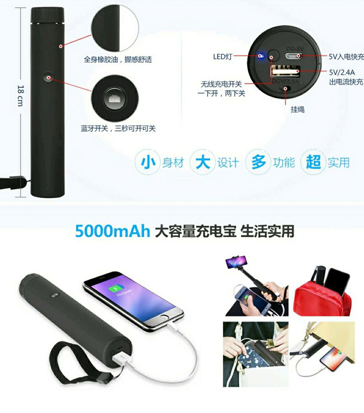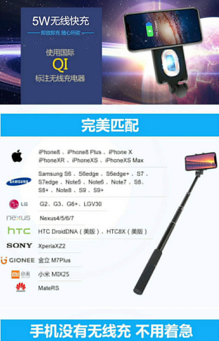 無(wú)線充電自拍桿
