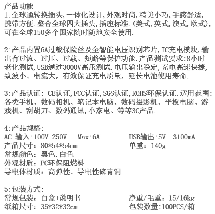 usbݔ:5V/3100mA