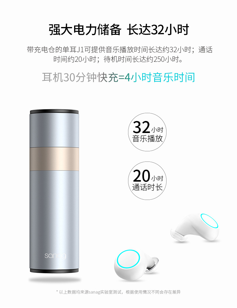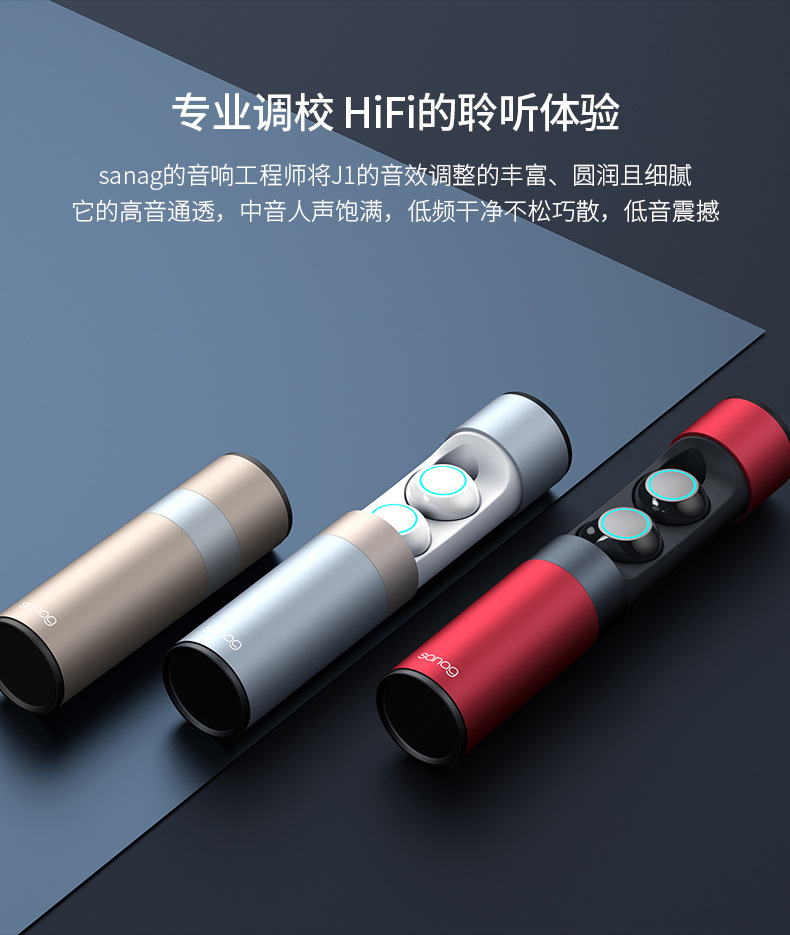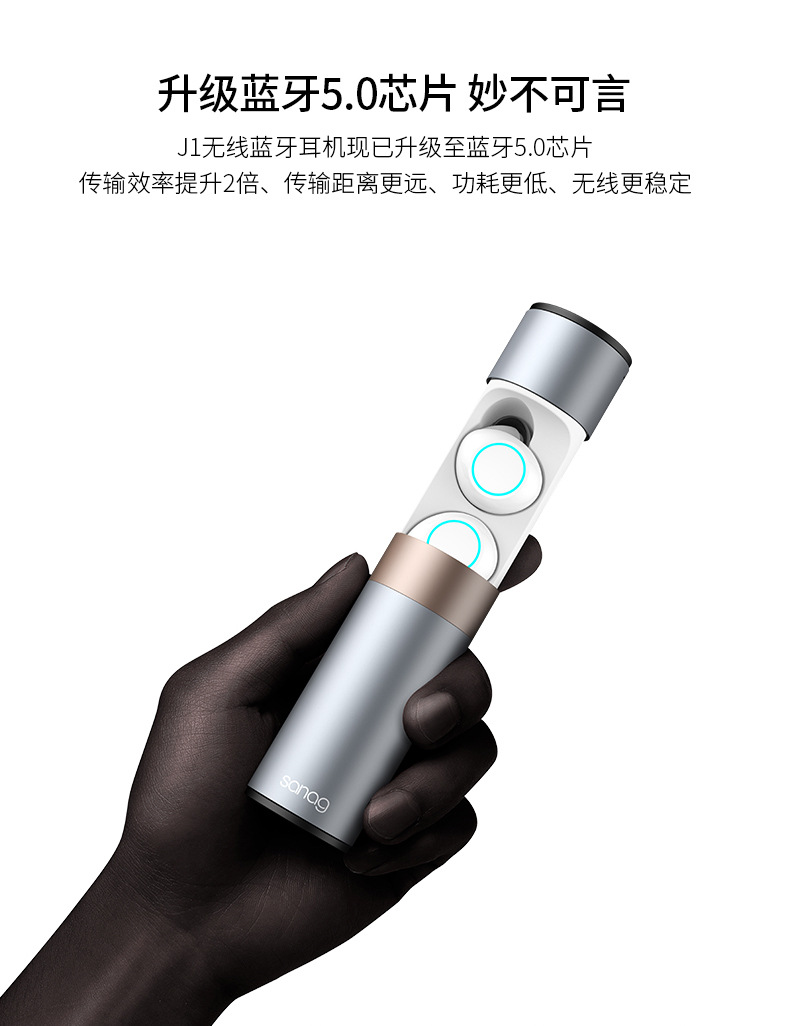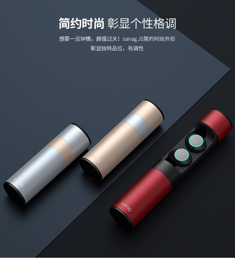 耳機(jī)拿出來長(zhǎng)按4秒,閃爍冰藍(lán)燈光接著手機(jī)藍(lán)牙搜索”sanag J1”連接即可