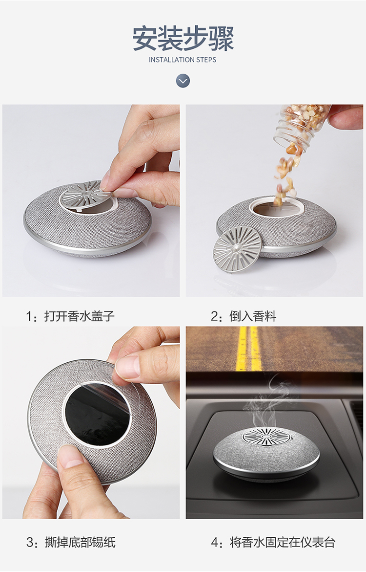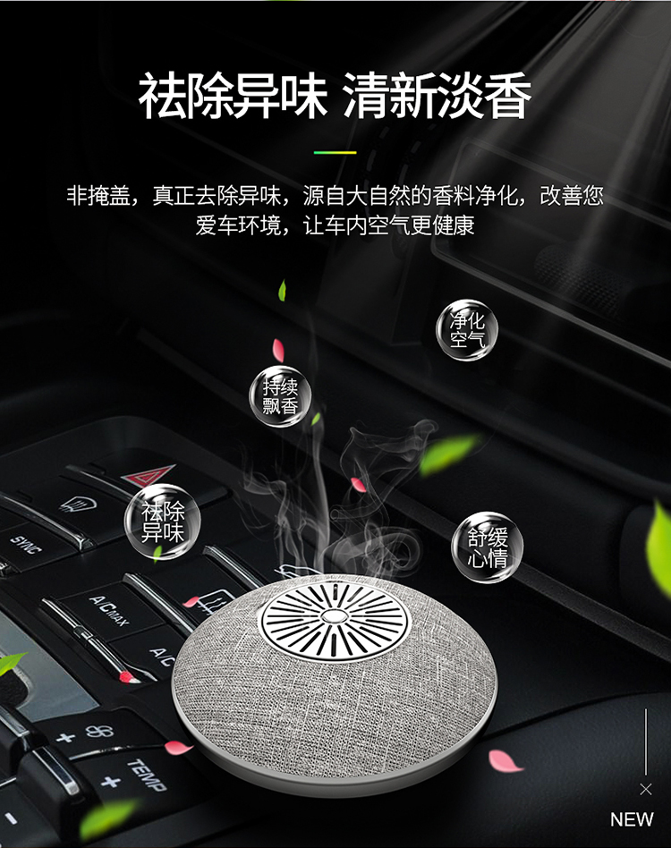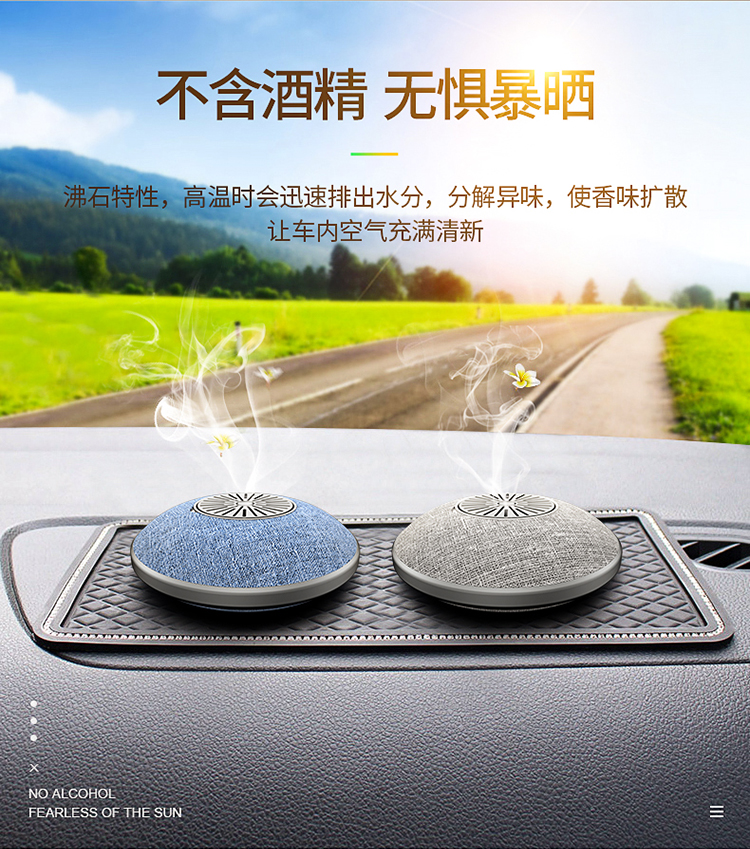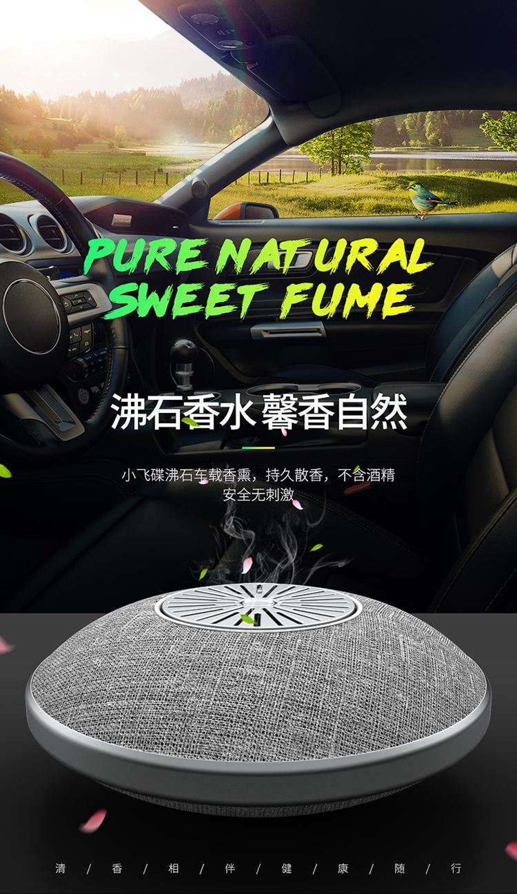 產(chǎn)品名稱(chēng):小飛碟沸石車(chē)載香薰工藝:布藝,pc塑膠