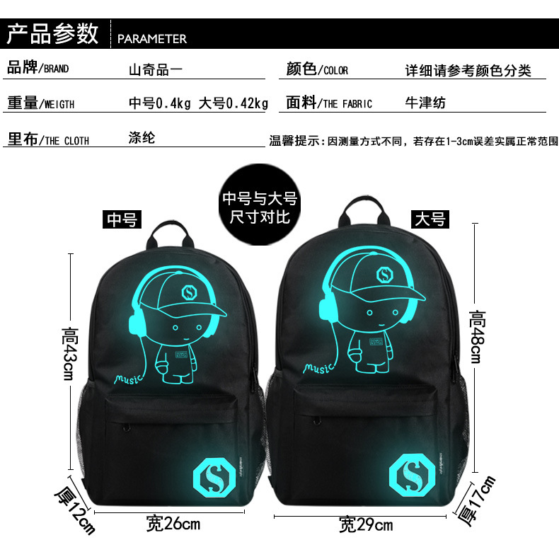 夜光usb戶外背包