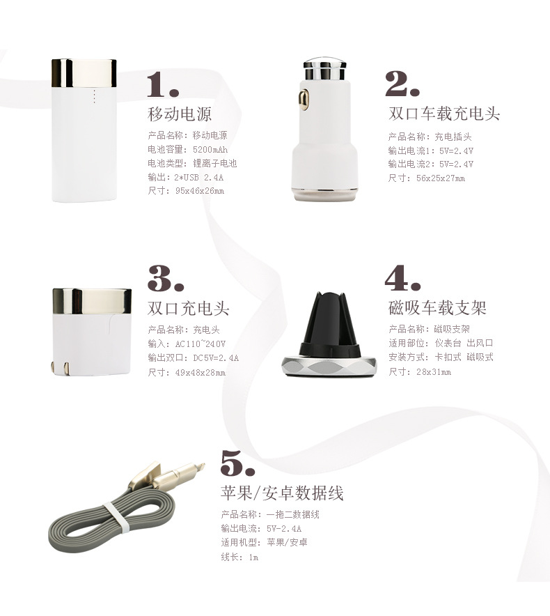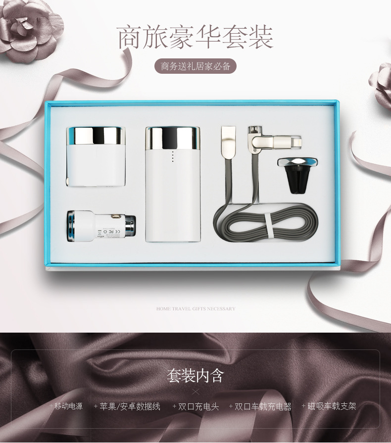 充電寶+數據線+雙扣充電頭+車載充電器+磁吸車載支架