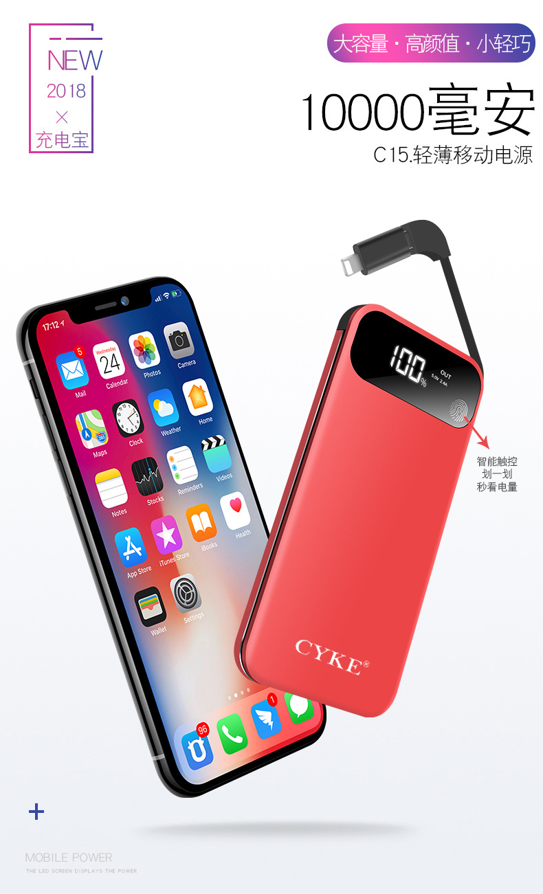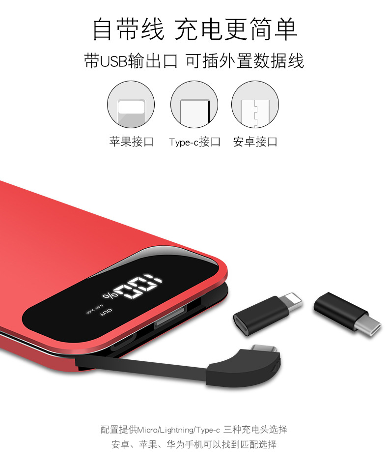 自帶線手機移動電源