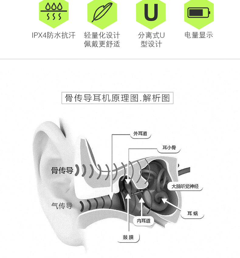 功能 電量顯示,語音控制,通話功能,支持音樂,多點連接,骨傳導