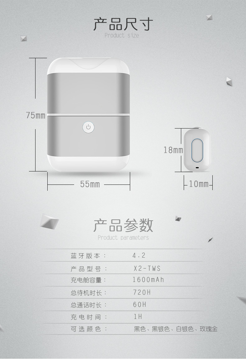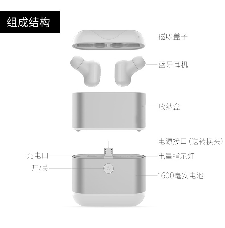 無線藍牙耳機移動電源充電盒