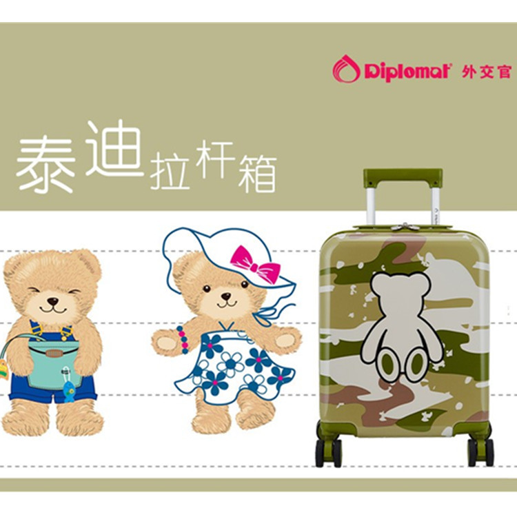 外交官精典泰迪熊圖案行李箱
