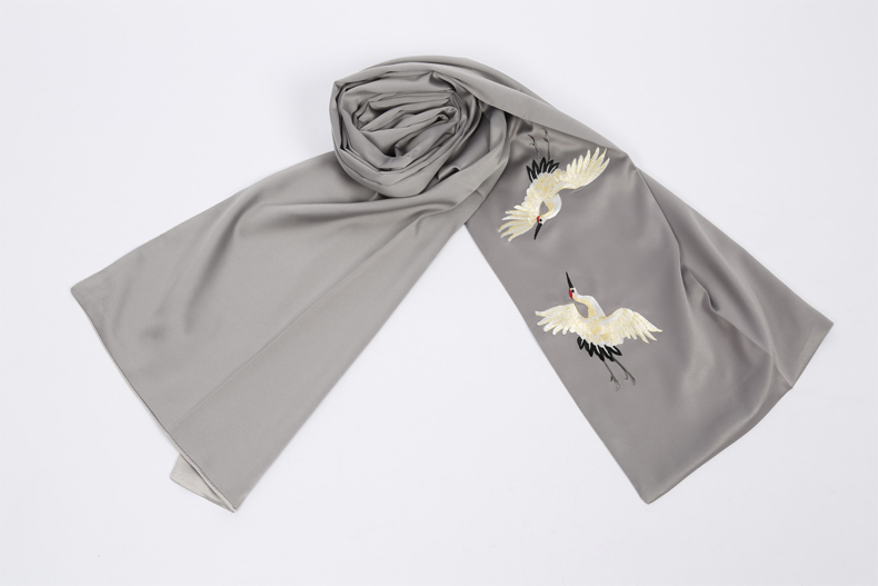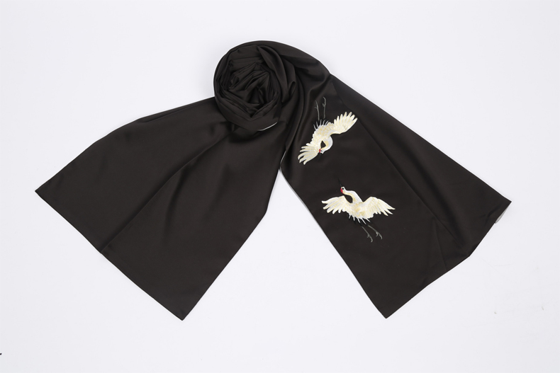 保暖刺繡圖案仿真絲圍巾