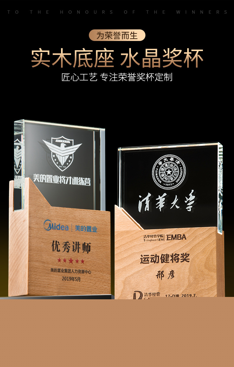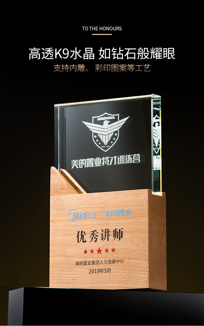 定制實木水晶獎杯