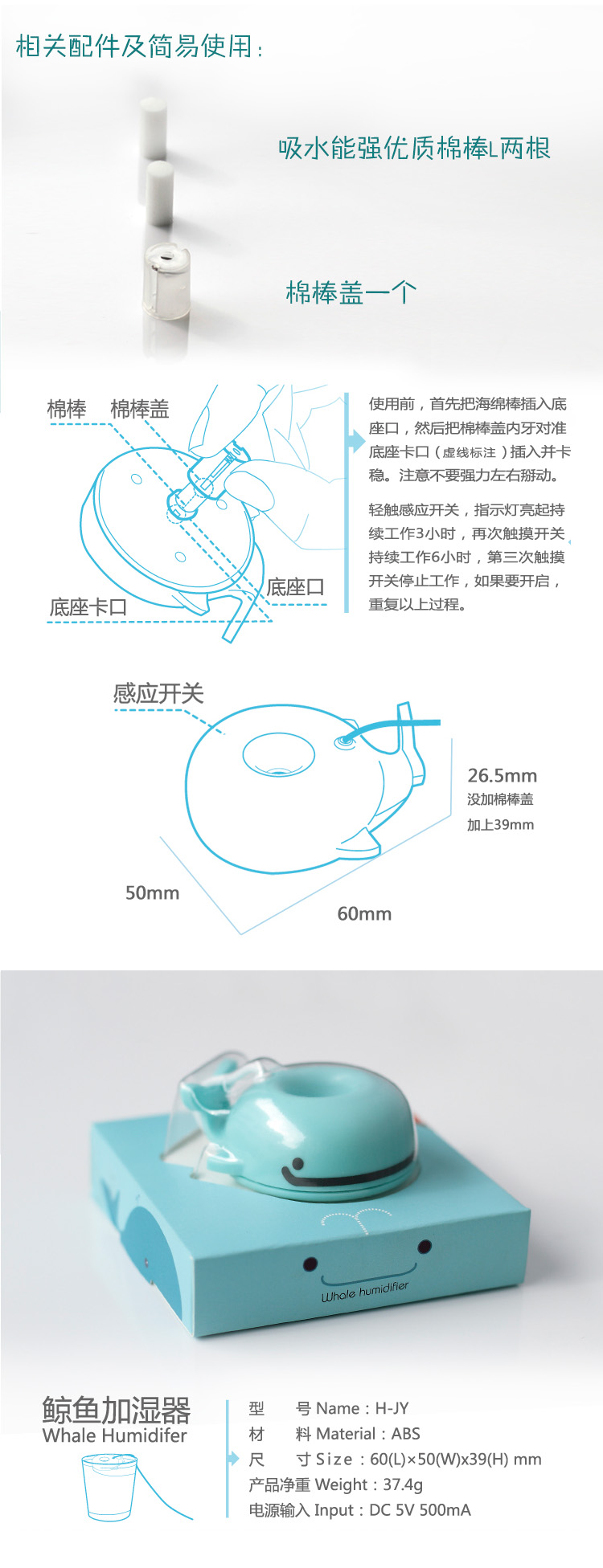 觸摸感應小鯨魚加濕器