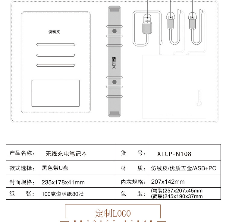 無線充電筆記本U盤記事本
