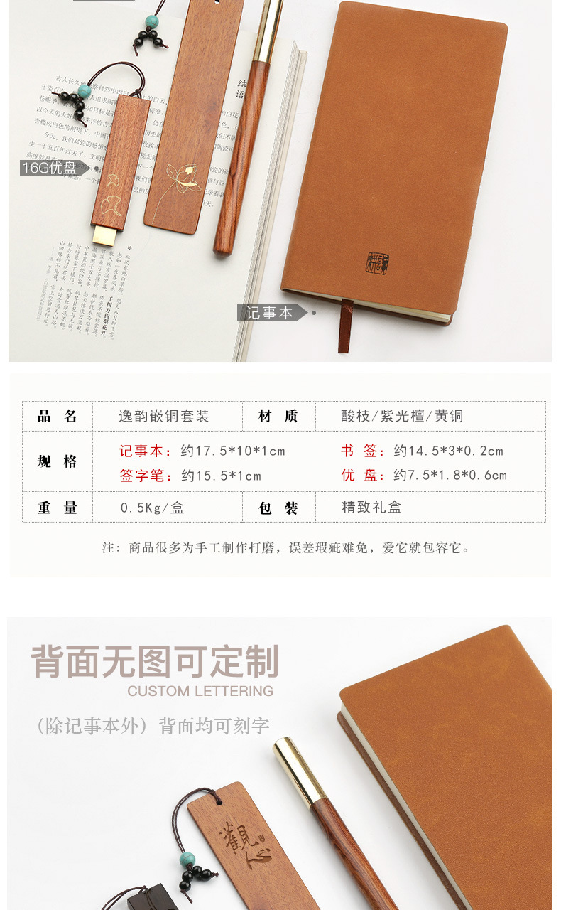 紅木簽字筆U盤書(shū)簽記事本套裝