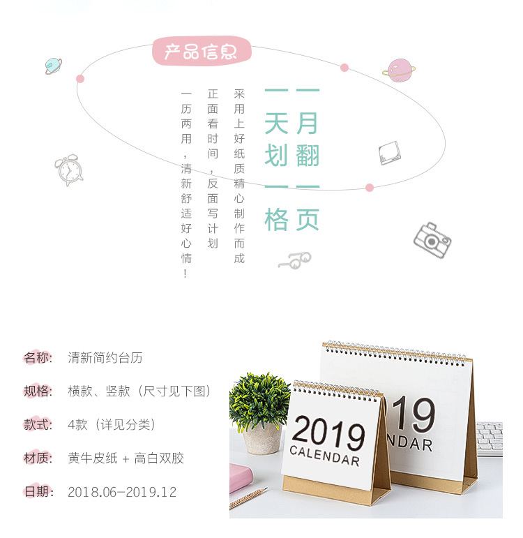 小清新辦公無印風簡約日歷記事計
