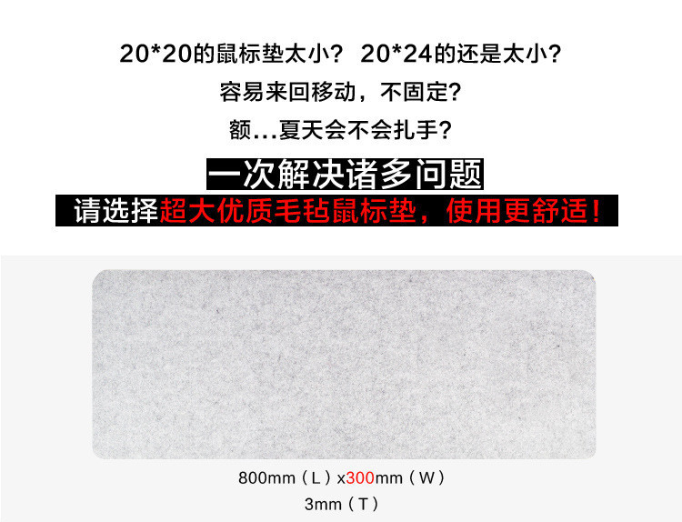 加厚毛氈電腦桌墊簡約鼠標墊