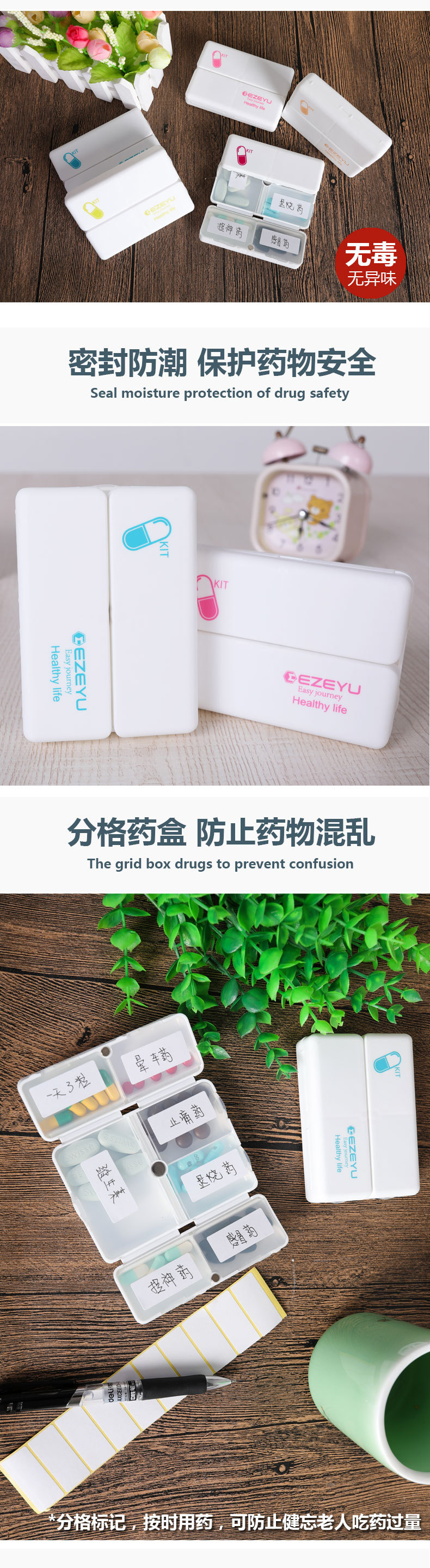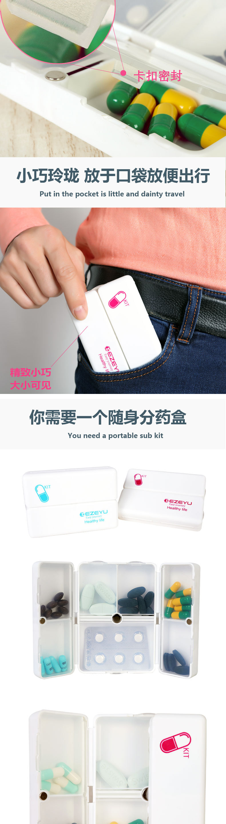 便攜式迷你密封藥盒七格